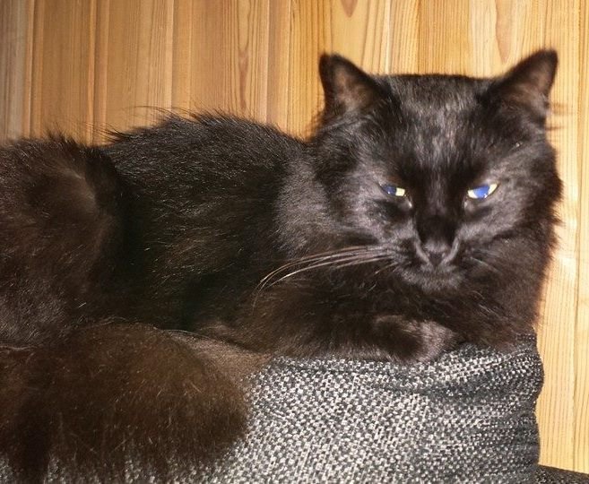 Sort langhåret kastrert hankatt har vert borte i 5 dager. Vi savner han enormt og håper han kommer hjem. Han er skvetten ovenfor andre men kosen inne,