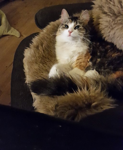 Etter nesten 1 mnd kom hun hjem. Tydelig at hun hadde Vært innkalt hos noen, da klærne var klipt, hun var tykk og er nå veldig redd for å Være ute uten oss.
