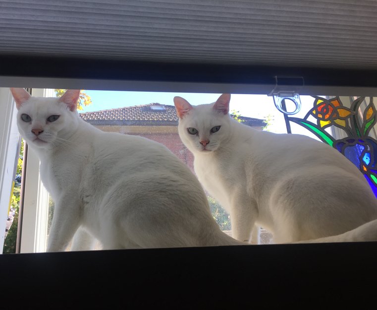 Två helt vita kastrerade hankatter har försvunnit. Dom ser identiska ut. Är väldigt glada i människor men är 100% innekatter så är inte vana att vara ute och är nog därför också väldigt rädda. Dom har inget halsband på sig. Chip-märkta. Dom heter Pus och Nypus. Dom sågs senast inne i lägenheten (som vi har letat igenom från golv till tak, här inne är dom inte) 23 aug kl 21.