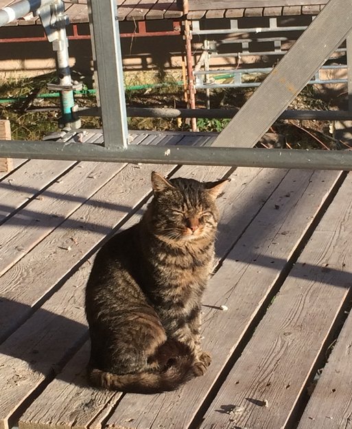 Den begynte å tigge mat rundt 1. august og har selvsagt fått det - stor appetitt. Pga to egne katter kan den ikke få bo her, men jeg er bekymret for at den skal gå ute da høsten nærmer seg med stormskritt!