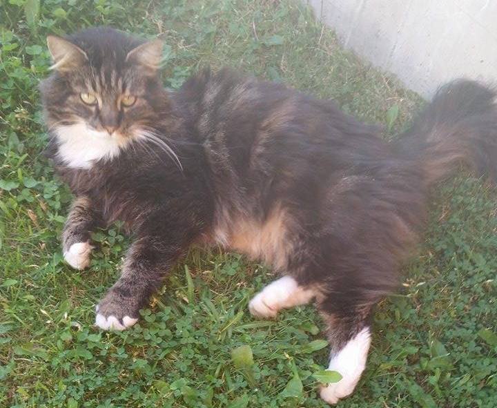 Den har vært her utenfor hjemmet mitt i 3-4 dager, virker veldig tillitsfull og mjauer endel. Så trur nok den har en eier sånn sett. Den er litt flassete og litt flokete i pelsen, så kan være den har vært på vift i noen dager. Den er gråbrun, litt rød, hvit på brystet og hvitt på bakpotene og litt hvit på frampotene. Fikk først vann her da det er så varmt ute no, så gikk den inn hos oss og begynte å spise fra matskåla til mi pusejente. Var helt utsultet pusen :/ Så lot den få spise litt. Håper det er en eier som savner denne nydelige pusen her <3
