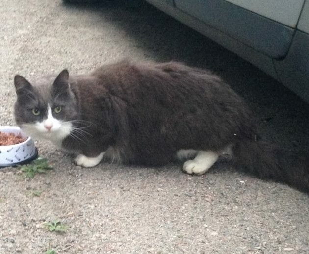 Mørk grå og hvit hannkatt ble funnet i Sarpsborg