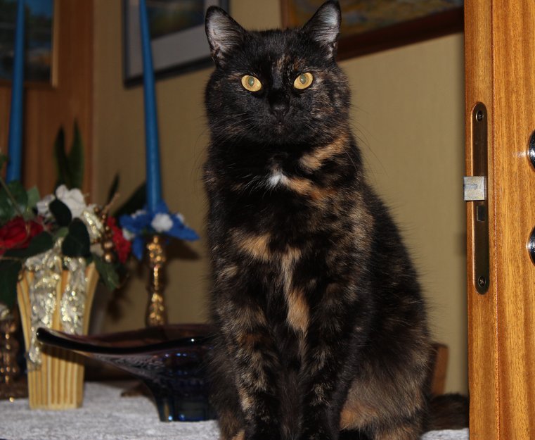 En nabo katt kom inn i boligen og skremte henne. Har ikke sett henne siden