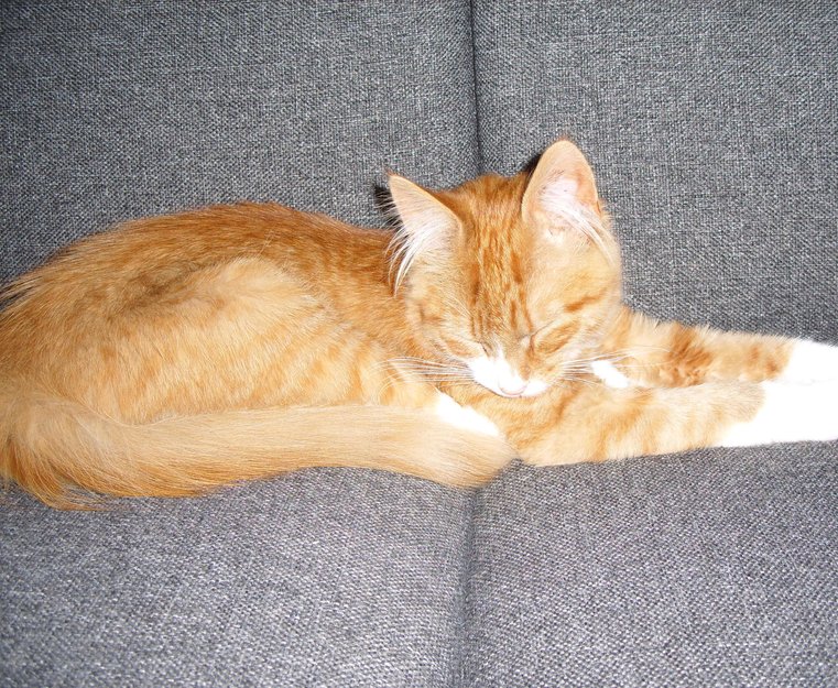 Hvite poter, litt hvitt ytterst på haletippen. Veldig kosete. Dusker på ørene. Ca 3-5 mndr.