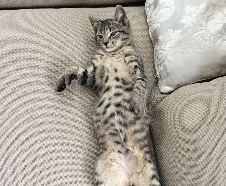 Ekstra tå på hver pote, ganske lang for alderen, elsker leverpostei.