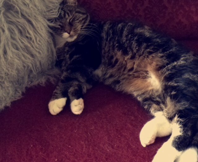Etter nesten 4 uker på loffen kom Turbo hjem av seg selv. Noe avmagret og et par sår på ryggen, men han er blitt skjemt bort etter hjemkomst med mat, sårpleie og kos. Lykkelige tider for katt og matmor.
