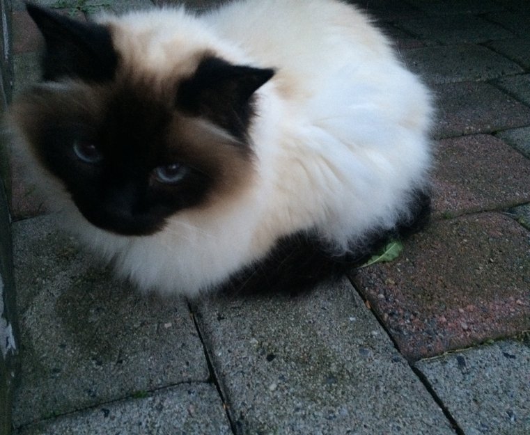 Det var som vi trudde.. Nye familien som har flyttet inn rett ved siden av huset har 3 katter. Og denne var en av de :) Morsom historie.