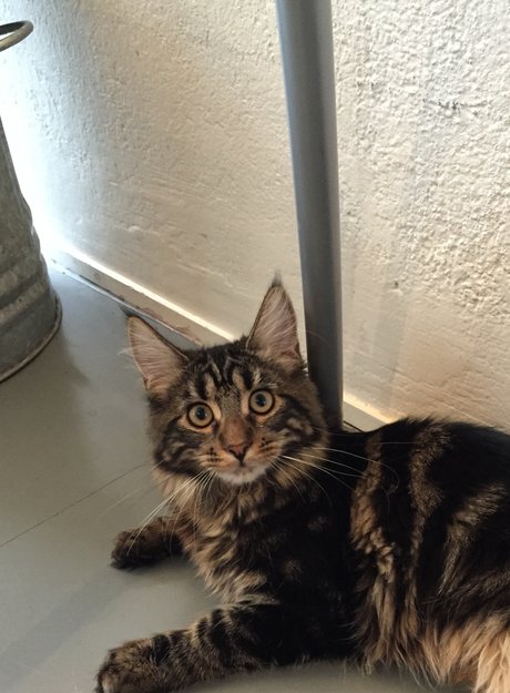 Tigerstripet 1 år gammel brun/gul Maine coon