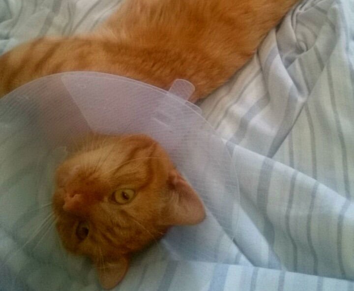 Vår katt har greid å kommet seg ut av vinduet og vandrer nå rundt med skjerm. Han har nylig operert vekk halen og blitt kastrert etter en ulykke. Han har derfor vært sperret inne i en periode og trenger tilsyn snarest som mulig. Vi er veldig redde for at han ikke ser ordentlig hvor han går med skjermen, store muligheter for at han kan bli sittende fast og ikke finne veien hjem. Han tilhører Magnus Berrføtts veg 4 , er som regel på tokter rundt omkring Valentinlyst. Håper noen har sett han eller ønsker å bidra med leting.