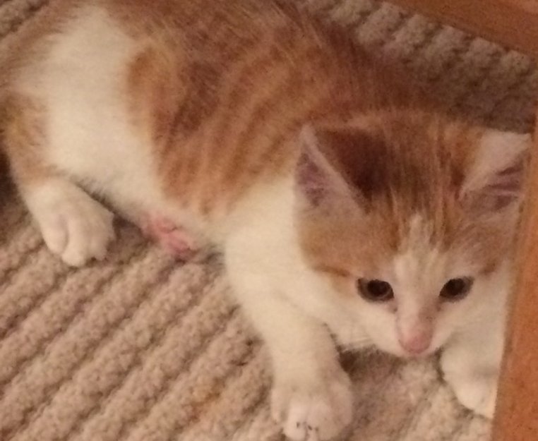 Hvit og oransj kattunge, ca. 3-4 måneder gammel
