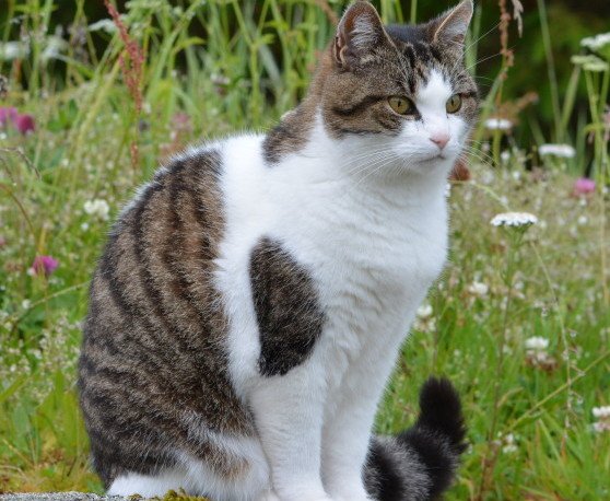 Hun er sterilisert og chipmerket, og har ikke halsbånd.