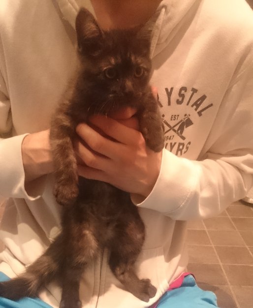 Fant en liten umerket kattunge ved Lademoen kirkegård, 3 mnd +- kanskje. Grå/ sortspraglet.