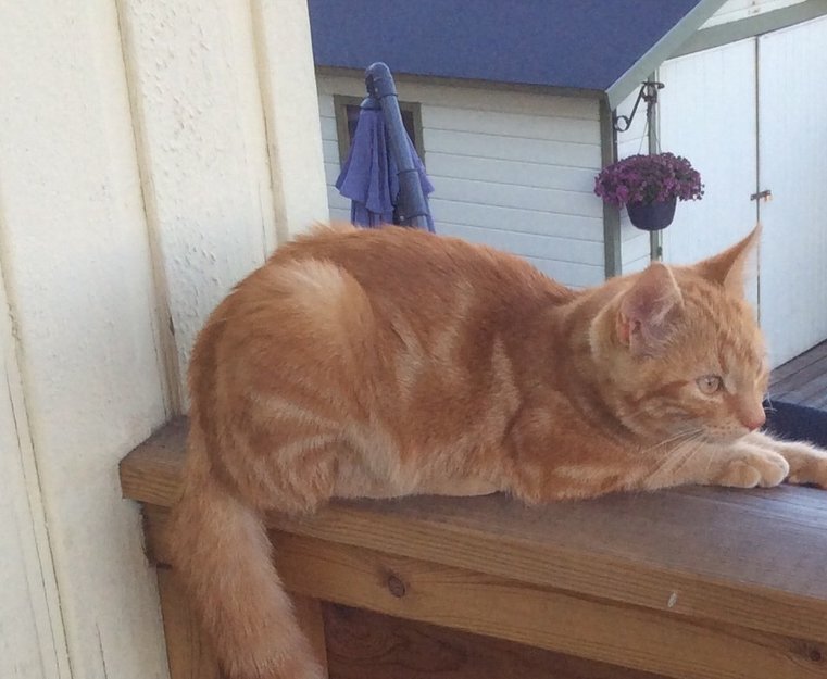 En veldig kosete liten gutt, purrer høylydt, leken. Er oransje med lys brunt.