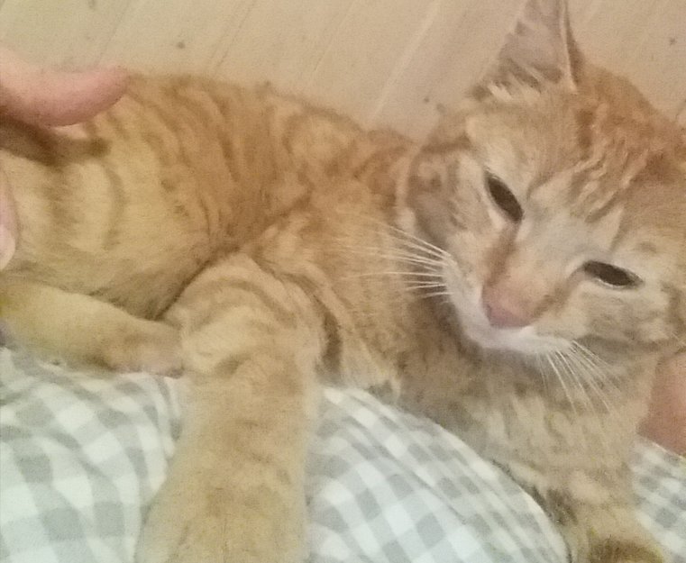 Han er ikke glad i halsbånd, så er 99,9 % sikker på at han har vridd seg utav det på en eller anen måte. Han er litt øve 1 år gammel. Kort-håret oransj katt. Litt hvit på halsen. Blir ekstremt glad viss folke sender bilde på sms eller facebook viss de ser en liknende katt i Skeiene / Sandved området. Navnet mitt er Line Svendsen (tlf. 466 60 268)