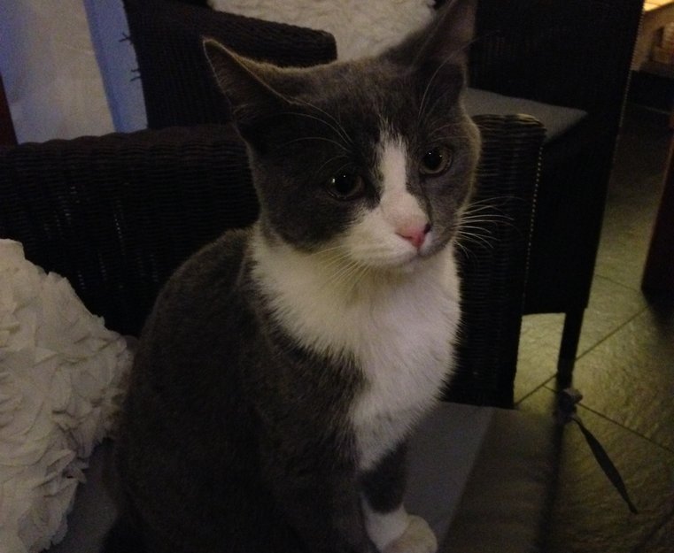 plutselig sto katten utenfor døra vår og skrika. Han fulgte etter naboene vår.
