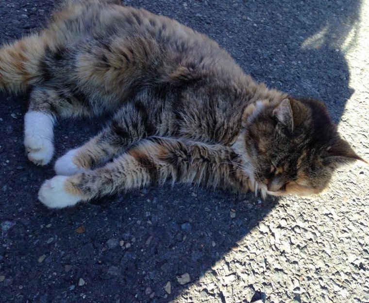 VI gikk tur, også ser jeg den, begynner å klappe den og merker at den er veldig tynn, flokete og sosial.