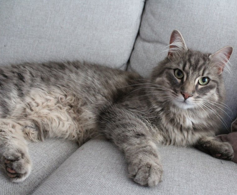 Linus har fine tegninger i ansikt og grønne øyne. Han er hvit under hake og lys i pelsen på magen. I den grå pelsen kan man skimte litt brunt. På ryggen og på halen har han mørkere pels.