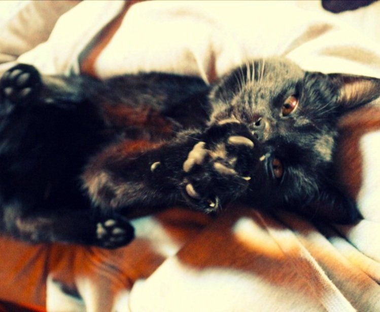 Heldekkende svart, liten hvit flekk på bryst, gule øyne, rolig og folkeglad.