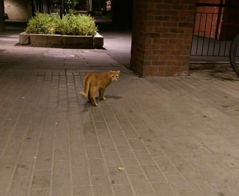 Har observert denne katten ute der jeg bor. Forsiktig men kontaktsøkende, og veldig sulten.