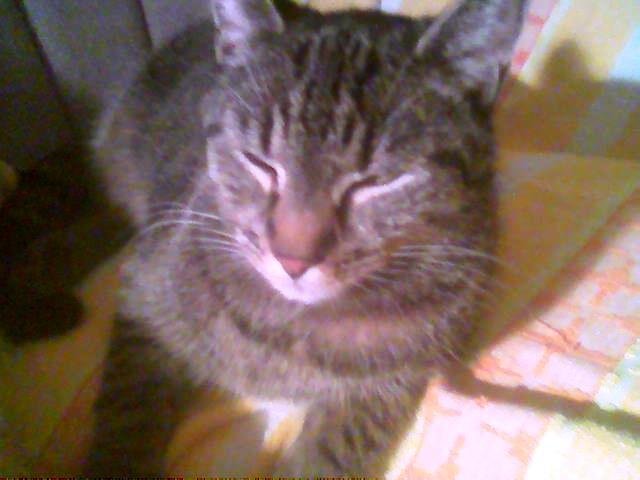 Fikk ikke kontakt med eier, men katten har ikke vært så mye hos finner lenger. Så eier er trolig hjemme fra ferie og kan mate katten sin selv...