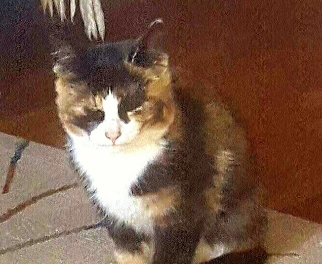 Liten kattunge ( ca 3 mnd) tricolor farge brun, sort og hvit har slått seg til ute på terrassen min. Er veldig redd , men vil gjerne inn. Hun fryser stakkars liten!