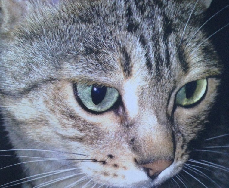 Vi ble oppringt av en nabo som hadde sett en av plakatene vi hadde hengt opp i nabolaget. Personen hadde sett katten på andre siden av jerbannen fra der vi bor - hun må ha kommet seg over til jernbanen igjennom et grevlinghull. På andre siden kom vi i prat med noen som jobbet med å reparare jernbaneskinnene. Vi spurte om de hadde sett en katt og de fortalte at for kun noen timer før hadde de løftet opp en helle over en kabelkanal og ut pilte en liten skrall grå katt. De pekte hvor den hadde tatt veien. I en liten skråning fant vi henne. Hun må ha vært innelåst i denne kanalen en god stund da hun var så tynn og skjelven at hun ikke kunne riese seg. Hun er nå trygt hjemme og sover, men skal til veterenæren i morgen tidlig. De fra jernbaneværket sa det var helt tilfeldig at de hadde løftet opp akkurat den hellen hun var under. Vi er ufattelig takknemmelig og overlykkelig for å ha henne hjemme igjen.