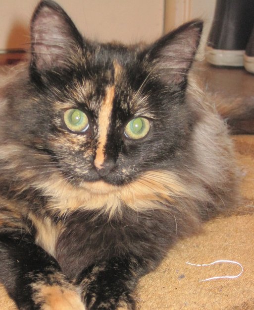 Hun er en kjærlig sjarmerende katt med en karakteristisk lysebrun stripe på nesen og lysebrune tegninger i pelsen. Ikke helt voksen enda.