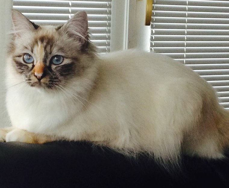 Esmilita er av rasen Hellig Birma, veldig kosete innekatt, men usikker på hvordan reagerer ute. Sikkert veldig skremt.