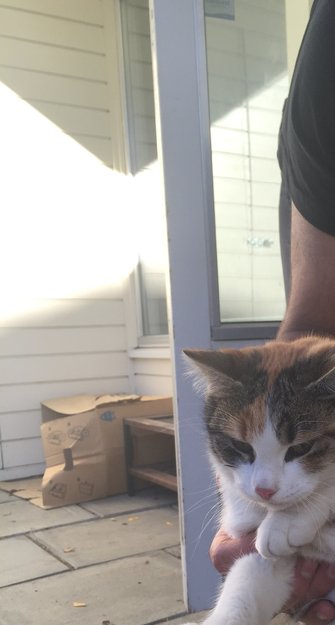 Denne katten blir matet av naboen og vi har hørt oss rundt om noen kjenner eller eier katten, men det er det ingen som gjør. Den har ikke chip (vært hos veterinær), men veldig kosete, ung katt.