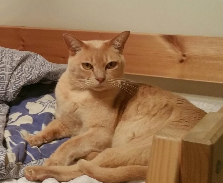 Texas er en 4 år gammel Burmeser gutt, farge Creme/ferskenfarget. Kastrert og chipet. Silkeglatt pels. Veldig tillitsfull og kjælen, glad i alle mennesker.