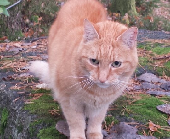 Oransje, korthåret og kastrert hannkatt befinner seg I Ranvikskogen i Sandefjord. Den har holdt til i området siden ca 23-24. Okt. Han er kontaktsøkende, maler og vil ha kos. Sulten! Han er øremerket, men da jeg sjekket chip hos veterinær var den ikke registrert! Han er ellers rolig og veldig snill, har hengemage. Kan bety at den plutselig har gått mye ned i vekt eller har nyresvikt. Håper han finner hjemmet sitt!