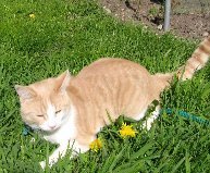 en kastrert hannkatt på 6 år. Han er ID-merket med chip,Han er så veldig menneskekjær, spesielt mot ukjente, men kan kanskje lokkes frem med våtfôr eller tunfisk. Han er en kraftig pus, men ikke overvektig.