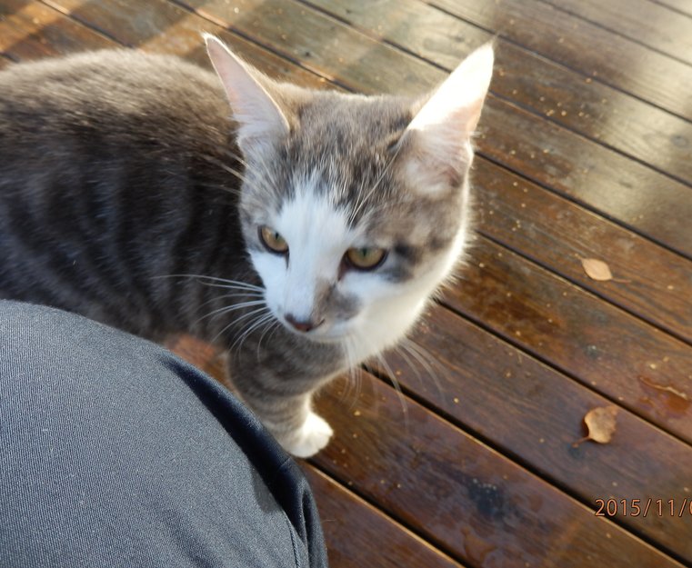 Katt dukket opp her, søndag den 1 november. Den var i følge med noen barn, og vi trodde den var deres. Angivelig fikk vi vite, skal katten ha fulgt etter noen barn ifra Mørkved skole, eller området der omkring. Dette skjedde fredag den 30 oktober. Den er veldig tillitsfull og kjælen.
