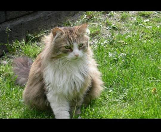 etter 16 dager fikk jeg sms om at han var obsevert i Mjøndalen.dro dit med en gang og gikk i gata og ropte på ham.gikk knappe 5 minutter så kom han.veldig klumpete i pelse og litt tynnere.men nå er han hjemme og spiser og sover mest.tusen takk til alle som har hjulpet oss å finne ham.