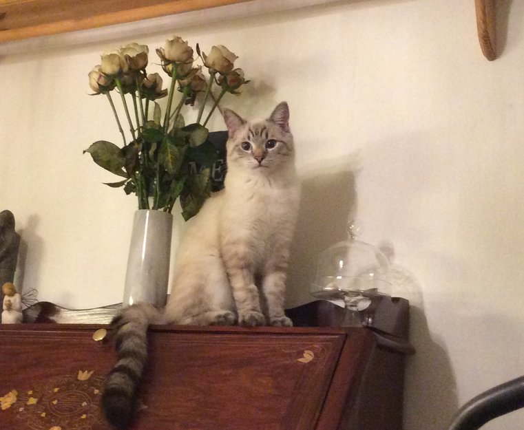 Liam (William) kom ikke hjem som han pleier i kveld, og nå legger jeg ut først som sist. Han er en blandingskatt med Ragdoll, veldig sosial og pratsom og søt, så ser ikke bort i fra at noen har sluppet han inn. Det er viktig at han får komme hjem da han går på medisiner og spesial fôr for magen. Han er chippet og kastrert!