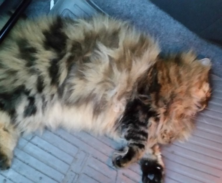Kom kjørende på Saltnesveien ca 5-600 m fra rundkjøringen lå det en liten pelsdott. Fikk snudd å sjekket ut at det var en liten langhåret brunstripete katt. Hadde nok Vært døde en stund men ikke så lenge. Spurte ett par i området der men ingen visste. Tok den med og leverte den på nærmeste dyreklinikk. Fått beskjed derfra om at den ikke var chipsen.