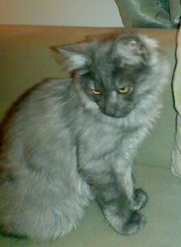 Semilanghåret,mørk grå og lys grå.Svart i ansiktet.