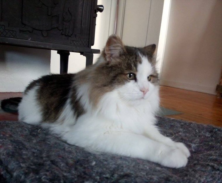 Katten ble tatt med fella av Dyrebeskyttelsen Norge Hedmark - Nord-Østerdal på begynnelsen av September 2015. Han var ukastrert, men er kastrert nå. Han har sannsynligvis vandret veldig lenge. Han er nå i en fosterhjem i Tylldalen, og det er ingen tvil at han hadde et hjem før.