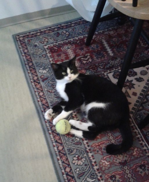Rolig og kosete katt. Chippet