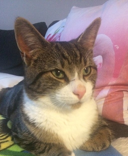 Pusen har vandret rundt på kaldnes ved spar siden torsdag. Han har vært sulten og kald. Jeg tok han inn til meg, etter at en av mine naboer var hos veterinær med han for å sjekke om han var chippet. Vetrinær fant ut at han er en ca ett år gammel ukastrert hannkatt.