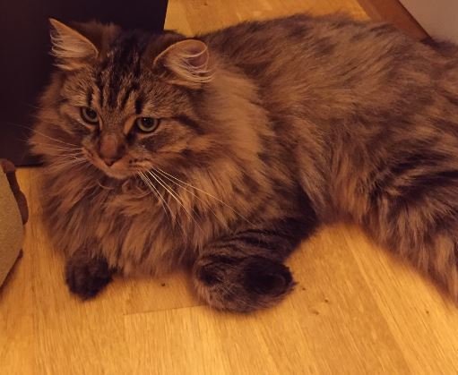 Den viser seg å være veldig kjælen, og tillitsfull. Regner med at den kommer fra en familie med barn, ettersom den går godt sammen de.