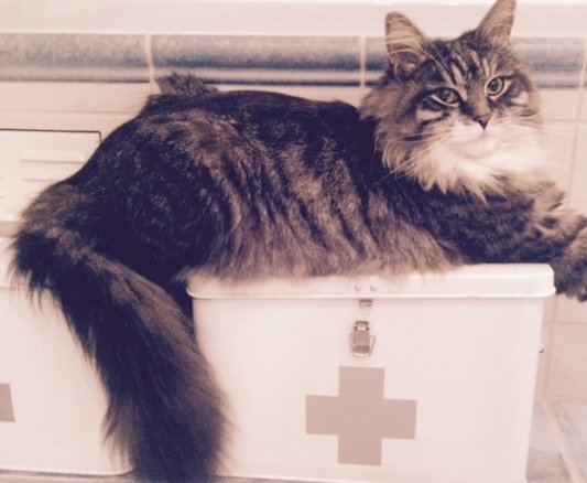 Svært kjælen og tillitsfull og lyder navnet Santo. Rasen sibirkatt.