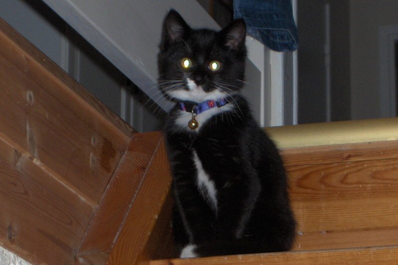 Katta kom heim i kveld, sulten og skitten. Får nå omsorg med god mat og bad.