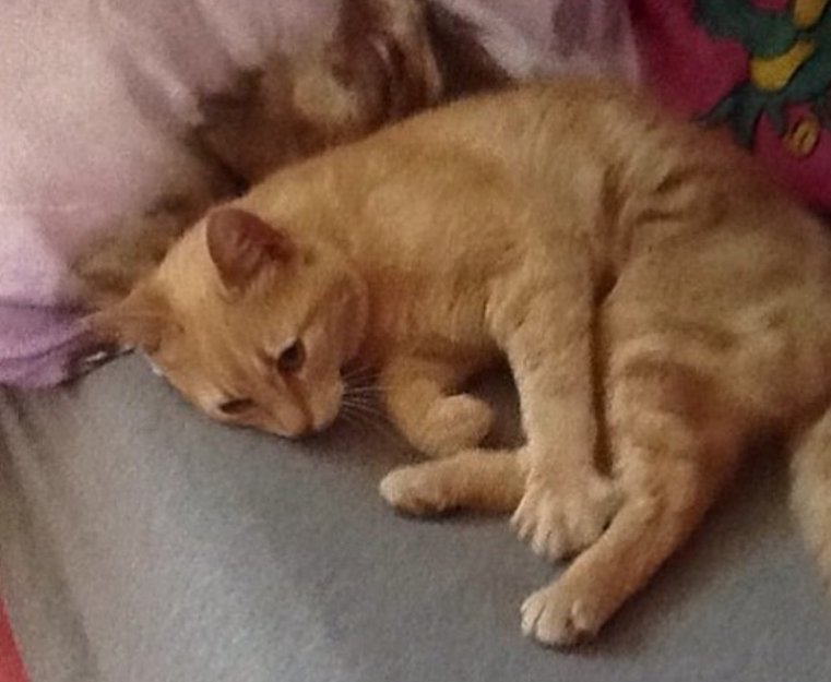 Katten min Charlie har vært lenge vekk nå han er oransje å har tigerstiper