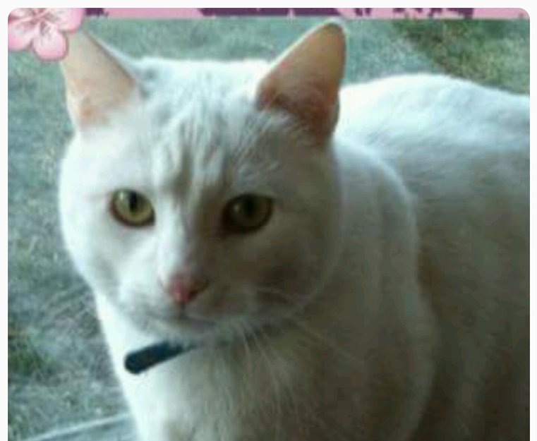 Hvit og kraftig hannkatt. Lyder navnet sitt Simo og veldig kosete.