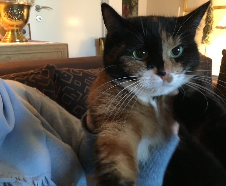 Denne pusejenta har holdt til i nærheten av "Norske Bunader" på Smestadlokket siden september. Fått litt mat av lokale. Er nå tatt inn i fosterhjem for Foreningen for omplassering av dyr. Tillitsfull og forsiktig frøken, kan ha vært en innekatt som er på avveie?