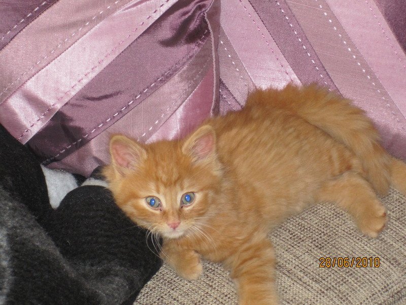 Eddy er spraglete lysebrun og med stor lysebrun buskete hale.Han er veldig tillitsfull.
