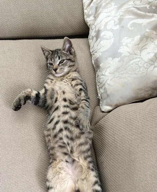 Han er en skipskatt med en ekstra tå på hver pote, og ingen hvite felter noe sted på kroppen.