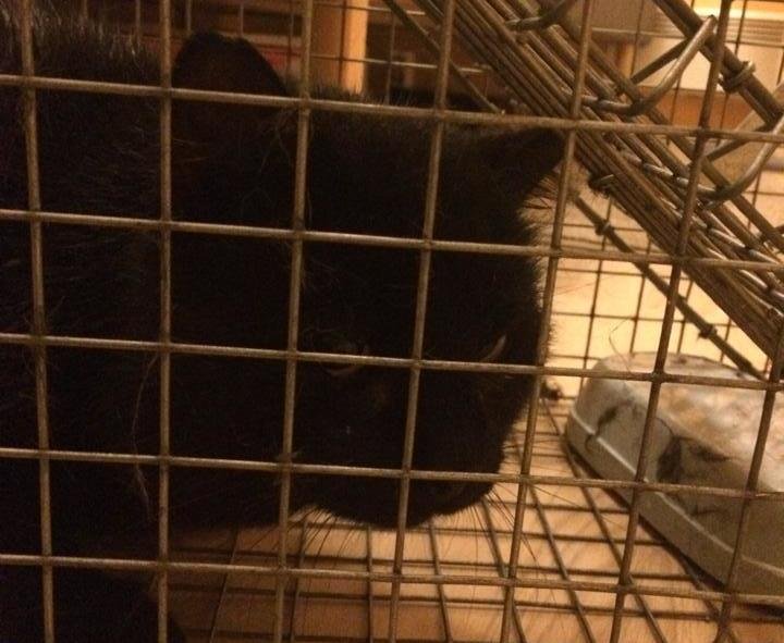 Sort langhåret. Skade på høyre øye, rift i øret. Preget av å ha gått ute over lenger tid.