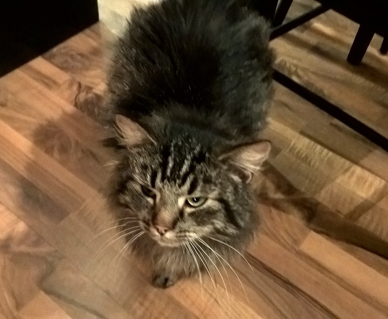 Har selvsagt tatt den inn i varmen og gitt den mat ettersom kulden er på vei :) Glad i mat. Har lagt ut på andre sider i nærområde og dyrehjelpen også, satt opp plakater og snakket med naboer. Dukker ikke eier opp så tar jeg kontakt med dyrebeskyttelsen til uka og hører videre der og se om den er chippet for jeg finner ingenting.